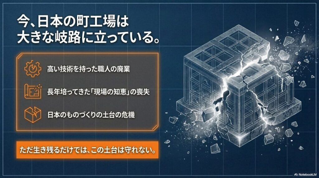 今、日本の町工場は大きな岐路に立っている